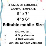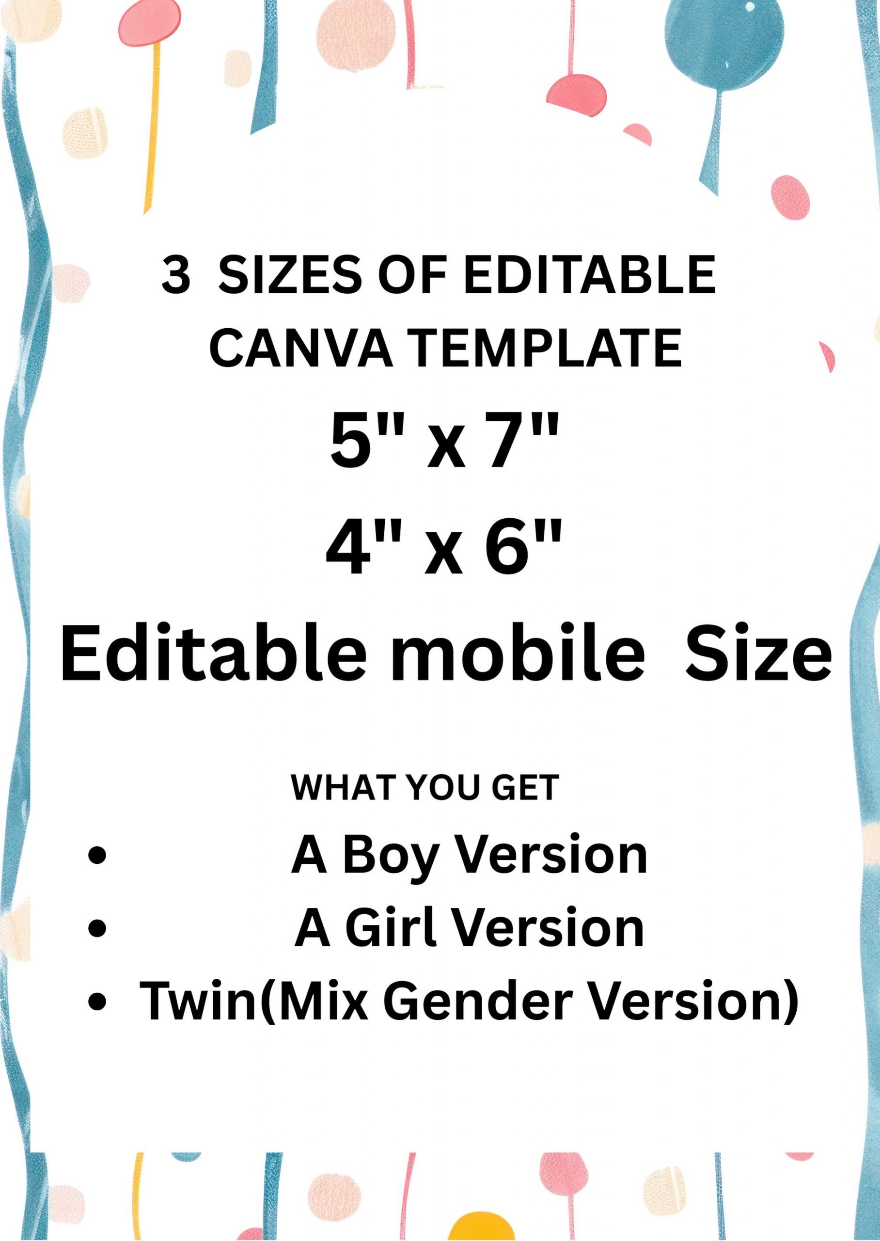 A PDF file with a link to your editable 5×7 inch , 4×6 inch and Mobile size invitation template in Canva.