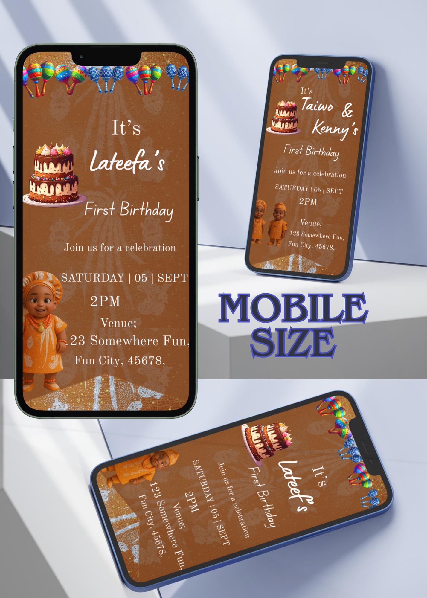 Aso Oke 1st Birthday Invitation: African Theme, Editable Template (Digital Download)