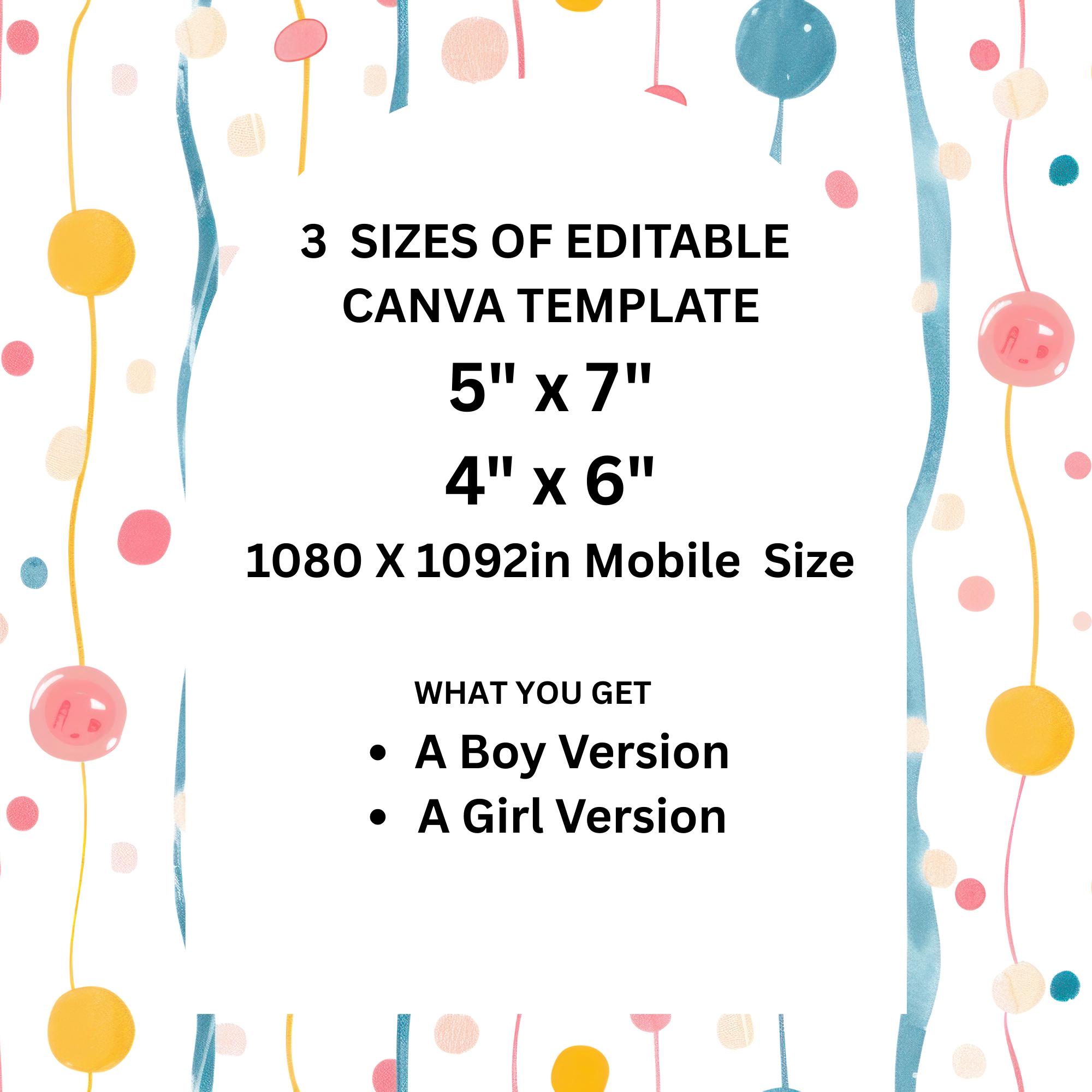 Fully Editable: All text is editable, allowing you to add the child's name, age, date, time, location, and RSVP details.