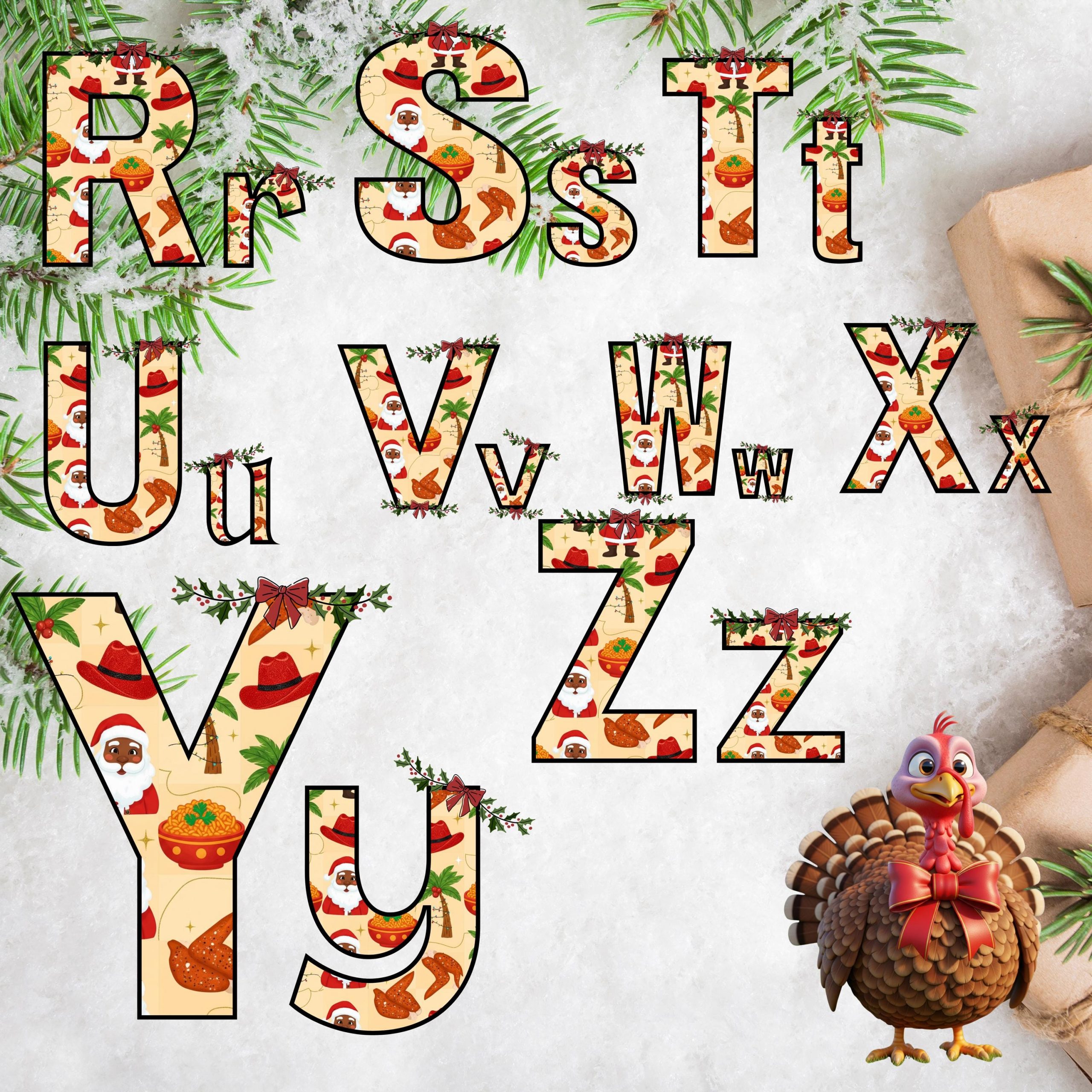 Vibrant African Christmas Alphabet & Clipart – A-Z, 0-9, a-z | Editable Canva Template